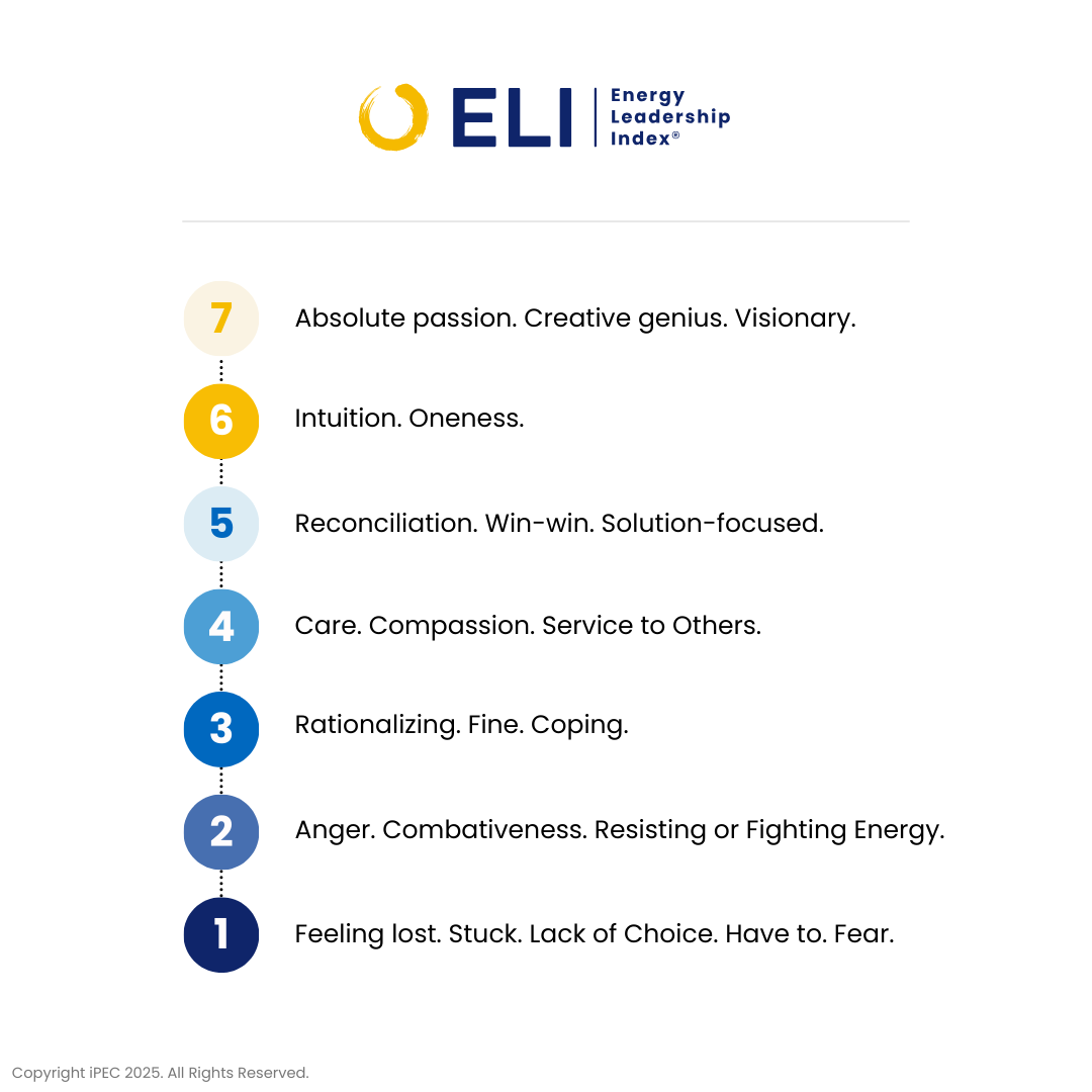 The Energy Leadership Index (ELI) is distinct because it is an attitudinal assessment grounded in an energy/action framework. Rather than placing you into a personality category, it looks at who you are through the lens of your energy levels and the attitudes, perceptions, and perspectives that influence how you experience and respond to the world around you.